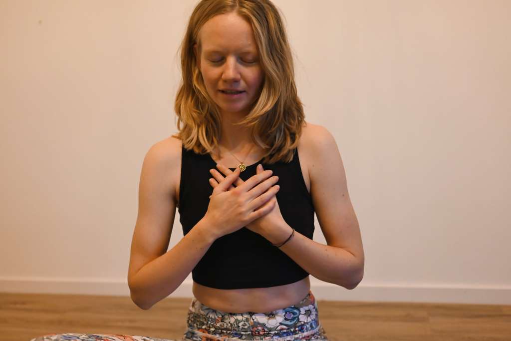 - tief und bewusst durch die Nase ein- und den Mund ausatmen, dabei die Augen schließen